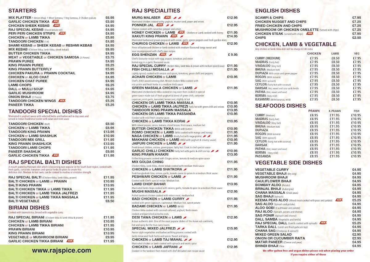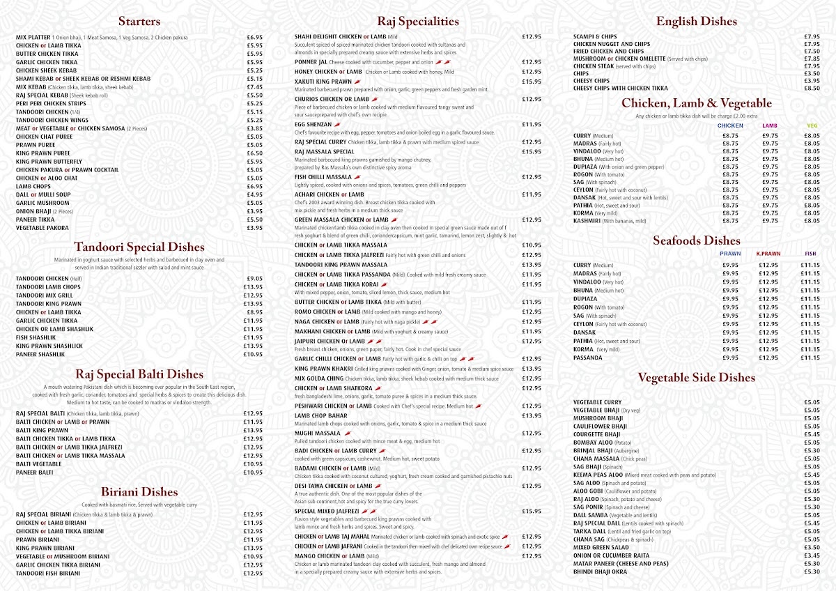 Raj Massala Menu